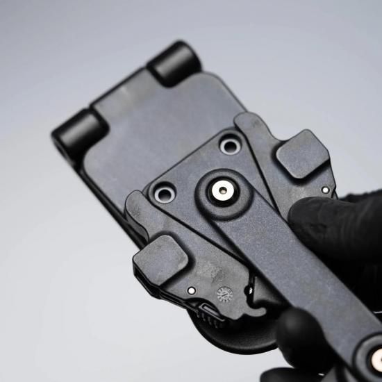 最高の戦術装備を求める人のために設計されました。ミニマルなデザインと革新的な動作システムにより、比類のない安定性と広い可動域を提供し、貴重な脚のスペースを有効活用します。